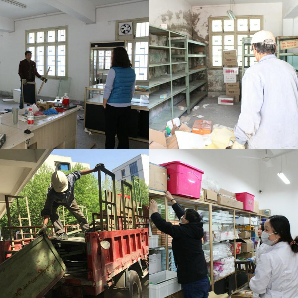 实验物质部为了配合学校120年校庆校园环境整体规划工作,由期刊社楼搬迁到人文楼。中心为了不影响学校正常的教学秩序,自三月上旬接到搬迁通知以来,在保证正常营业的基础上,从选址、装修、物资准备到部门搬迁、正式运营,各项工作紧锣密鼓,于4月6日高效、平稳的完成了搬迁工作。由于搬迁工作时间紧、任务重、人手短缺,实验物质部整体改造收尾工作迟迟没有铺开,5月12日周末,在集团领导的关心、支持下,协调多部门对实验物质部新址重点清理。