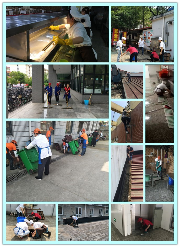 内务整理是饮食人的传统活动,利用工作之余,食堂管理人员带头组织参与,爬楼顶,扫落叶;揭盖板,掏地沟;找死角,做卫生;阴雨天,无积水,是饮食人内务整理的各个环节,饮食人正在做!