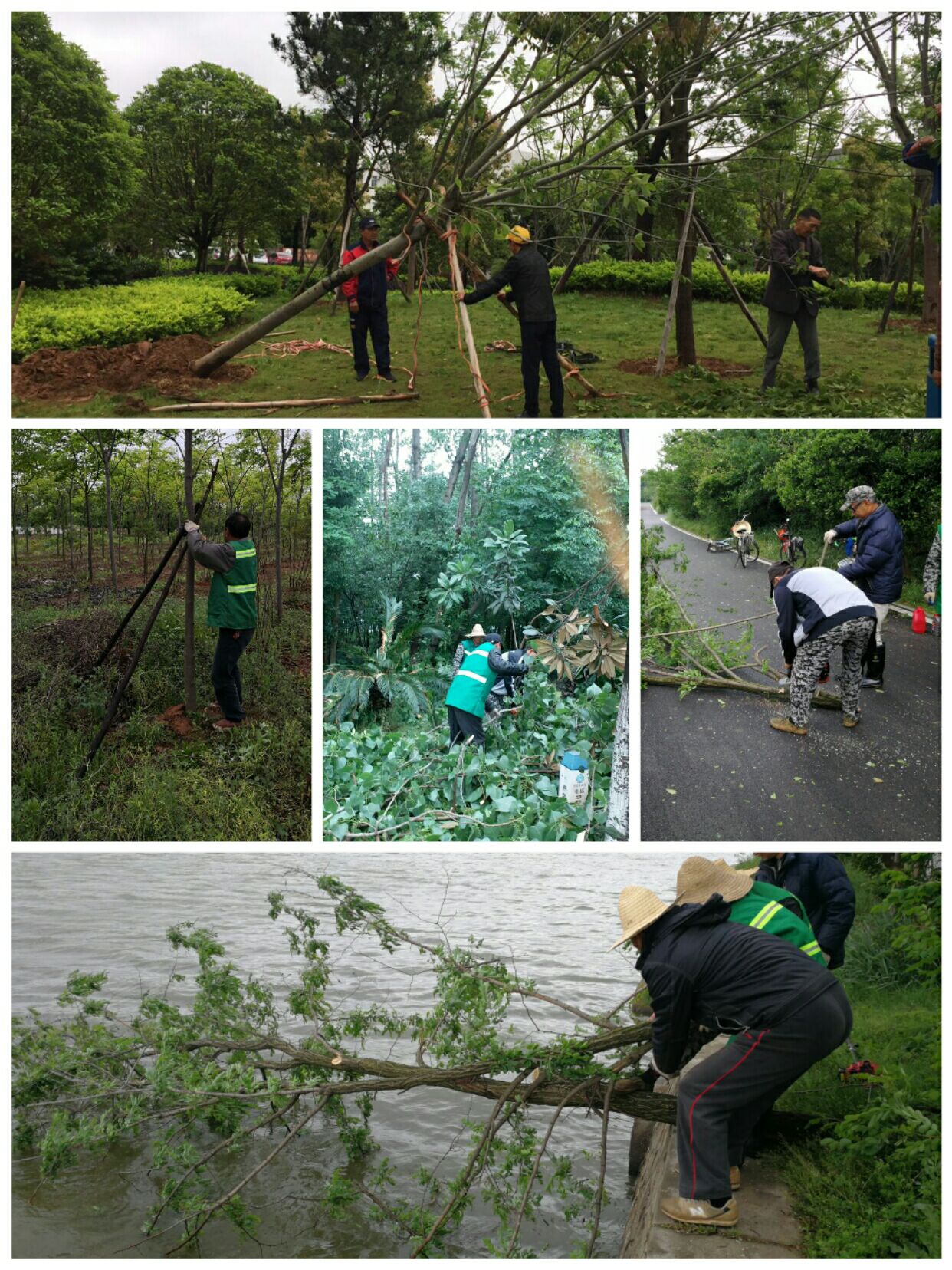 4月23日清早,绿化保洁服务中心室外保洁部和网格长也提前赶到校园开始巡查,将具体树木倒伏情况上报到工作群。中心室外维护部及时调度人员,赶赴倒伏现场进行处理,根据树木倒伏地段和对师生出行的影响程度进行应急处理,对倒伏树木做出相应的扶正、清除计划。