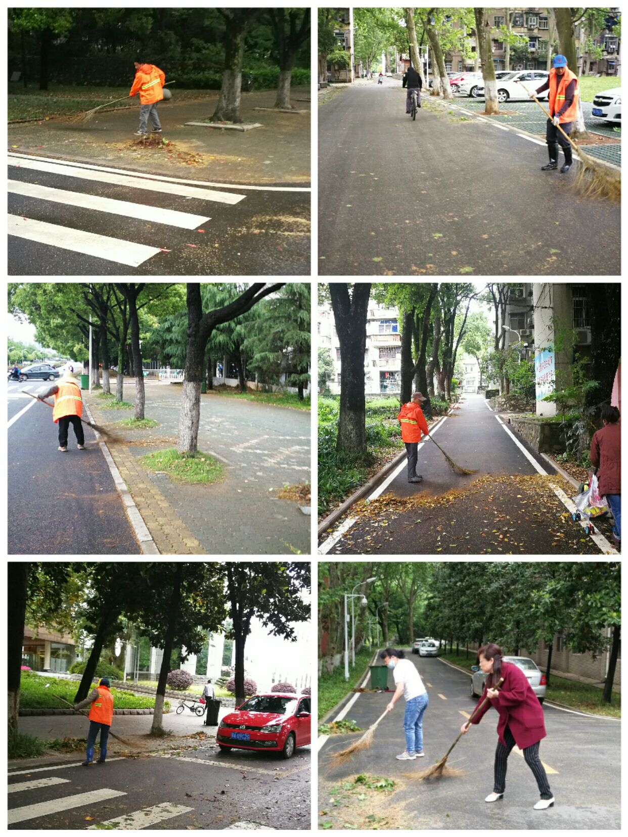 恶劣天气不只是造成了树木倒伏,也给道路的清洁工作带来了很大的麻烦,但室外保洁部的闵师傅说:“昨天天气恶劣,落叶和枯枝会很多,今天早上我们提前赶到校园,清理折断树枝、落叶,尽量保证校园道路的畅通,然后再将路面清扫一遍,让道路干净整洁。”